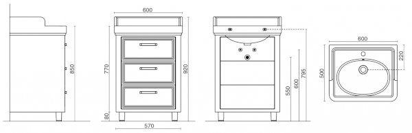 Тумба-умывальник Pompei 60, 3 ящика