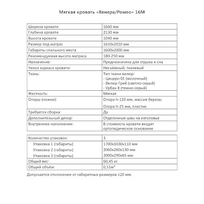 Спальное место: 160х200 см
